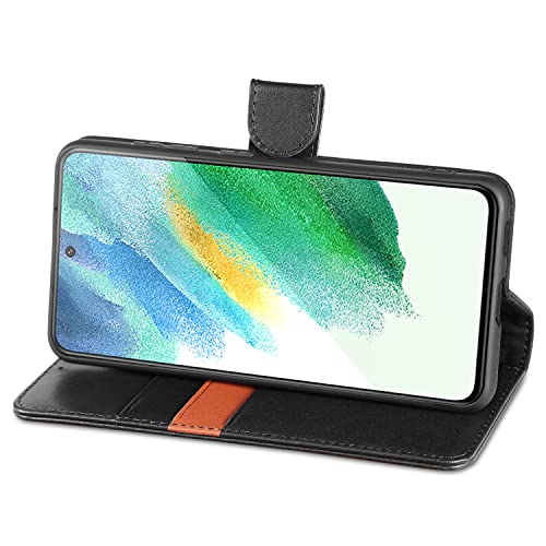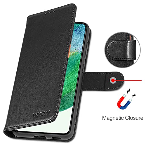Lensun Cover per Samsung Galaxy S21 FE 5G, Custodia in Vera Pelle [RFID Blocking] Libro con Portafoglio Chiusura Magnetico Flip Custodie Cuoio per Telefono Samsung S21 FE 5G - Nero (S21FE-JT-5BK)