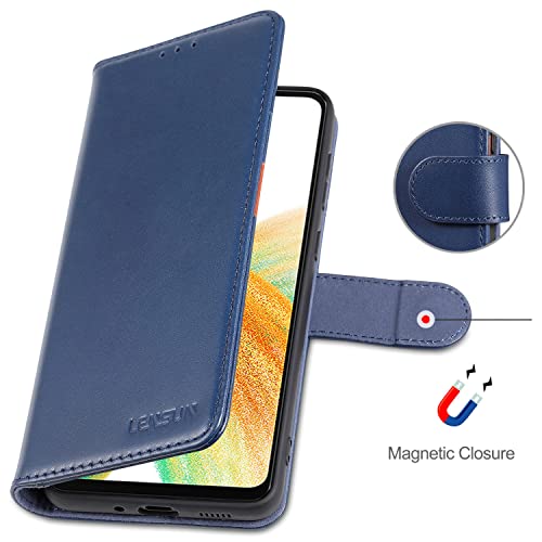 Lensun Cover per Samsung Galaxy A33 5G, Custodia in Vera Pelle [RFID Blocking] Libro con Portafoglio Chiusura Magnetico Flip Custodie Cuoio per Telefono Samsung Galaxy A33 5G -Blu scuro (A33-JT-DE)