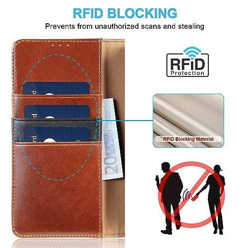 Lensun Cover per Samsung Galaxy A14 5G, Custodia in Vera Pelle [RFID Blocking] Libro con Portafoglio Chiusura Magnetico Flip Custodie Cuoio per Telefono Samsung A14 4G - Marrone Scuro