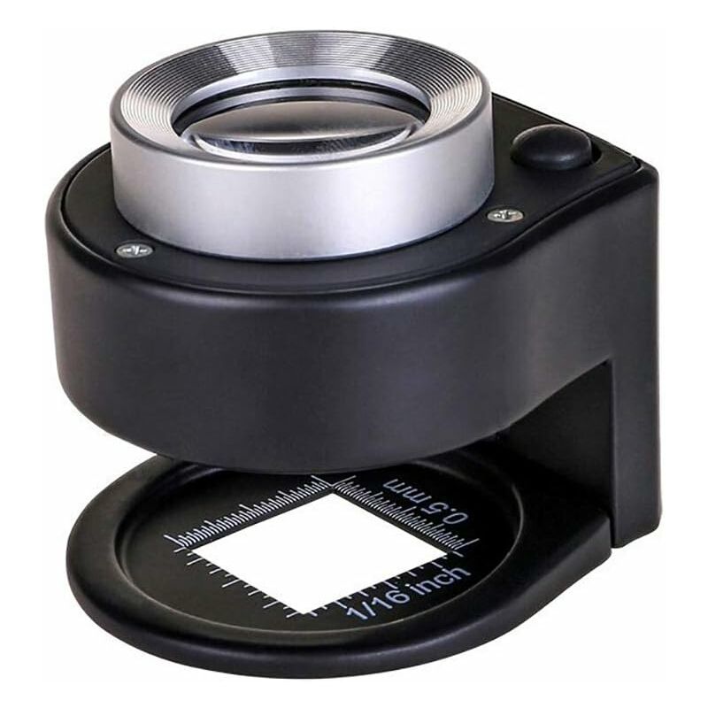 Lenti d'ingrandimento con luce: Questa lente d'ingrandimento incorpora 6 luci a LED, 3 luci bianche per l'osservazione generalmente ingrandita e 3 lampade UV per la lente d'ingrandimento del rilevatore di denaro. Queste luci LED a risparmio energetico sono progettate per aiutarti a leggere di notte o in luoghi bui. Ingrandimento 30X Doppi obiettivi da 25 mm: Con un diametro di 25 mm / 0,98 pollici, questa lente in vetro ottico a doppio rivestimento fornisce un'immagine chiara e una buona trasmissione della luce. L'obiettivo 30X è perfetto per miniature, gioielli o ispezioni professionali. Forte e durevole: Realizzato in robusta lega di zinco con vernice nera. Ci sono due scale precise: 1/16 di pollice e 0,5 mm sulla base. Puoi misurare rapidamente le dimensioni dell'oggetto. Questa lente d'ingrandimento per microscopio è abbastanza resistente e non si danneggia facilmente. Mani libere e facile da usare: La lunghezza focale di questa lente d'ingrandimento da tavolo è fissa e non