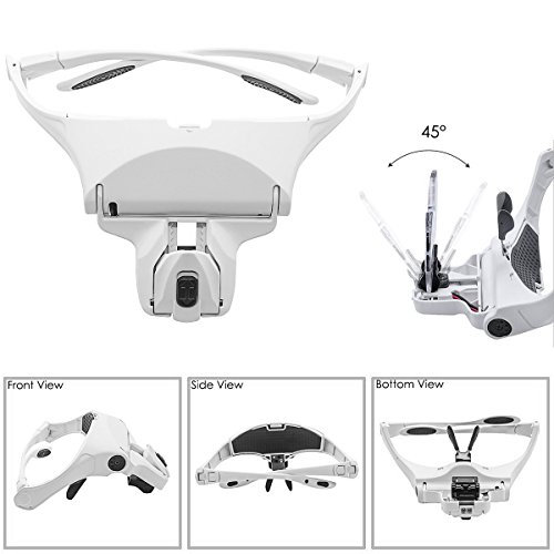 Lente di ingrandimento indossabile, con luce LED e 5 lenti intercambiabili (ingrandimenti 1X, 1,5X, 2X e 2,5X), ideale per leggere tenendo le mani libere o come lente da gioielliere