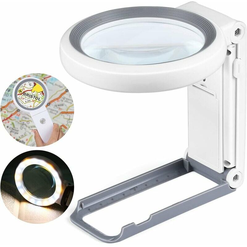 Ingrandimento ad alta potenza. Questa lente d'ingrandimento offre un ingrandimento 30X 10X, consentendo agli utenti ipovedenti di leggere qualsiasi dimensione di testo. Lente d'ingrandimento illuminata: con 18 LED super luminosi di alta qualità per fornire una luminosità extra per garantire una migliore esperienza di lettura Portatile o verticale. La lente d'ingrandimento può essere una lente d'ingrandimento portatile o da supporto. Il supporto pieghevole consente di posizionarlo su un tavolo, liberando le mani per un'esperienza di lettura più confortevole. Materiale del prodotto: ABS + lente in vetro (strato singolo) Ingrandimento del prodotto: lente grande 10x, lente piccola 30x Diametro lente: 82 mm per lente grande, 21 mm per lente piccola La confezione include: 1 lente d'ingrandimento Nota: La confezione contiene solo la lente d'ingrandimento, nessun altro elemento Il colore e le dimensioni potrebbero essere leggermente diversi a causa di fattori quali il monitor e la