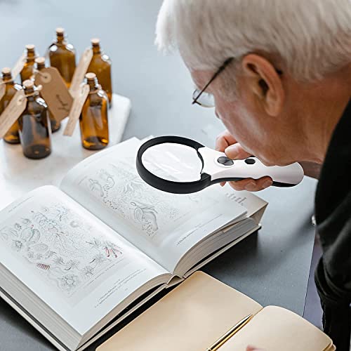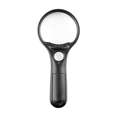 MAGNIFICATORE ILLUMINATO A PORTATA DI MANO: Luce bianca + luce UV, aiuta a leggere i caratteri piccoli e altri lavori di dettaglio. Prodotto a doppia lente per hobby come il collezionismo di francobolli, il lavoro sui circuiti elettrici e la ricerca di guasti e il lavoro ravvicinato in generale.