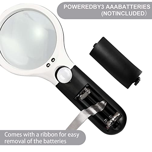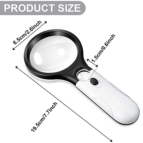 【Design facile da usare】 Realizzato in plastica ABS ecologica, l'impugnatura antiscivolo offre una buona presa. L'interruttore si trova dove sarebbe il pollice e inserisce semplicemente 3 batterie AAA per accendere e spegnere facilmente la luce LED. Il pulsante di accensione sulla lente d'ingrandimento può essere utilizzato per modificare la modalità di illuminazione. NOTA: le batterie non sono incluse.