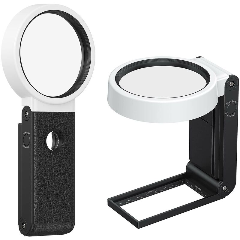 Lente d'ingrandimento illuminata: dotata di una lente di ingrandimento 25X e di una lente di ingrandimento 8X che garantiscono un'eccellente qualità dell'immagine senza distorsioni, inoltre, viene fornita anche con 6 luci LED ultra luminose e 2 luci UV, che consentono di leggere o lavorare al buio o identificare l'autenticità delle banconote. Tipi di utilizzo multipli: questa lente d'ingrandimento è comoda per l'uso manuale grazie al suo design leggero. Inoltre, può anche stare da solo in qualsiasi momento quando le tue mani sono stanche, liberando le mani per un uso più facile. Due alimentatori: la lente d'ingrandimento può essere alimentata da 3 batterie AAA da 1,5 V ( non incluso) o un cavo di ricarica USB, molto comodo da usare sia a casa che all'aperto. Ampia applicazione: grazie alla lente ottica acrilica da 80 mm senza distorsioni, questo palmare La lente d'ingrandimento è adatta per la lettura intensiva e non perderai i dettagli sottili di giornali, riviste, fotografie, mappe