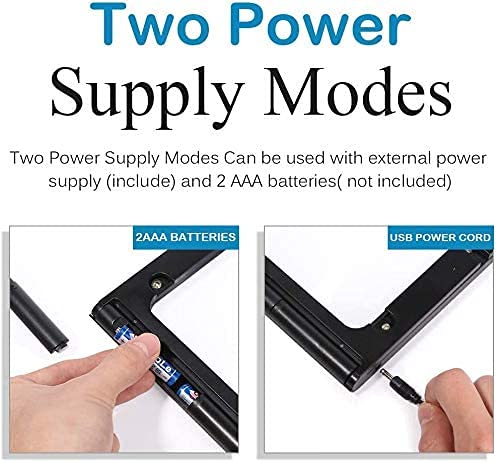 Doppia potenza grazie alla corrente continua e alla batteria: questa grande lente d'ingrandimento può essere alimentata in modo intercambiabile con corrente alternata o DC. Due batterie AAA (non incluse). Quando si utilizza l'alimentatore integrato, l'alimentatore esterno deve essere estratto.