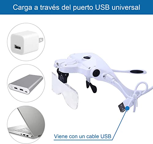 Lente Ingrandimento con Luce, Occhiali Ingrandimento Professionali per Modellismo,Riparazione Orologi,Dentista,Ricamo,Piccoli Lavori di Miniatura - 5 Lenti Intercambiabili 1.0X, 1.5X, 2.0X, 2.5X, 3.5X