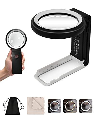 STN Lente d'ingrandimento con 18 LED Luce,10X Vetro ottico Lente Ingrandimento Professionali con Pieghevole Supporto per Lettura, Monete, Esplorazione, Gioielli