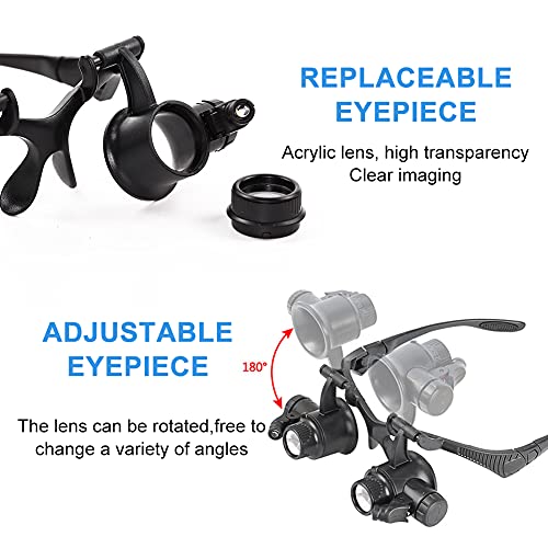 SJH Lente d'Ingrandimento con 2 luci LED - Zoom da 2,5X a 25x, Lente d'Ingrandimento a Mani libere in Acrilico, Archetto Regolabile, con 16 Lenti Rimovibili, Adatta per lavori ravvicinati