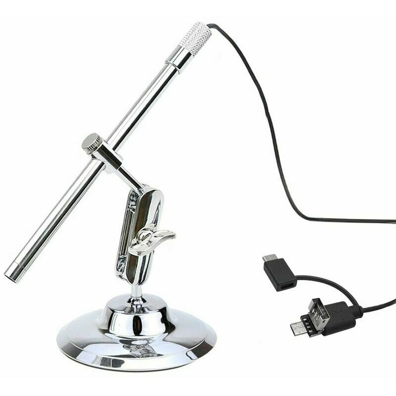 Questo è un microscopio digitale USB portatile. Con ingrandimento 10X-200X, gamma di messa a fuoco 10mm-500mm, sensore CMOS da 2,0 Megapixel e risoluzione 1280 x 720 pixel, questo microscopio digitale USB può fornire una qualità video/immagine chiara e di buona qualità. Inoltre, le 8 luci LED integrate e l'illuminazione regolabile possono garantire che le immagini ingrandite siano chiare e luminose. Dotato di connettore USB 2 in 1 (Micro-USB e USB) e connettore Type-c, ampiamente compatibile con PC Windows e Mac, e adatto anche per smartphone Android con funzione OTG (porta Micro-USB). c), molto facile da usare. Specifiche: < ;