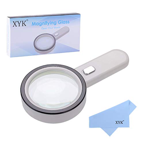 XYK - Lente d'ingrandimento, LED, molto grande, portatile, 20X, con luce per leggere, ispezionare, hobby e molto altro (colore bianco)