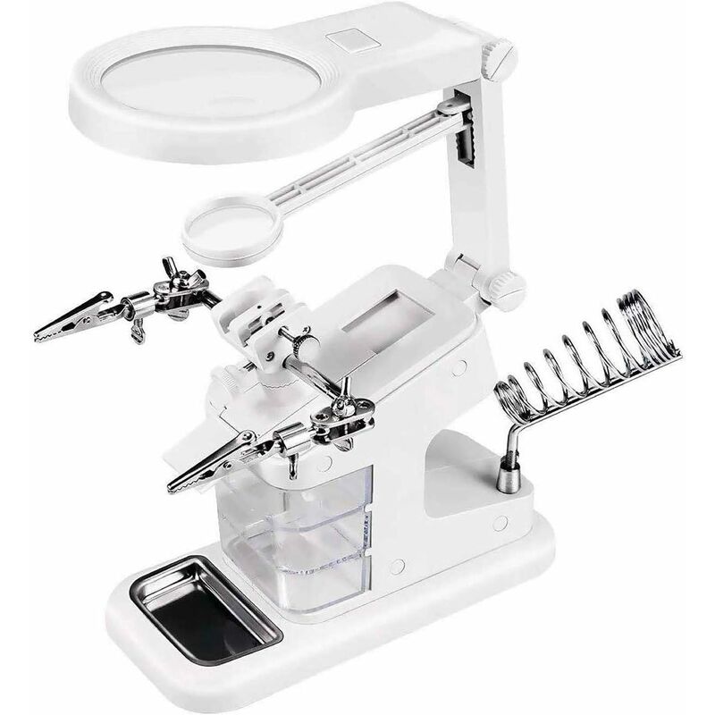 La lente d'ingrandimento portatile 3X è ideale per hobby e artigianato. Mentre l'obiettivo ausiliario 4,5X e l'obiettivo 25X aggiungono uno zoom extra quando è necessario vedere dettagli più complessi Il collo girevole a 360° e i bracci flessibili consentono di regolare l'obiettivo nella posizione desiderata Dotato di 10 luci LED super luminose per un'area di visualizzazione uniformemente illuminata anche in condizioni di scarsa illuminazione. Le luci funzionano con 3 batterie AAA (non incluse) o una fonte USB come power bank o presa a muro 2 mani completamente regolabili con morsetti e clip a coccodrillo, supporto in ferro, vassoio in metallo, 3 cassette degli attrezzi e base più stabile . Altezza e larghezza facili da regolare, supporto per lente d'ingrandimento efficace Uno strumento utile per saldare, costruire modelli, saldare, collezionare francobolli, riparazioni elettroniche, progetti fai-da-te, gioielli, osservazione biologica, hobby e artigianato