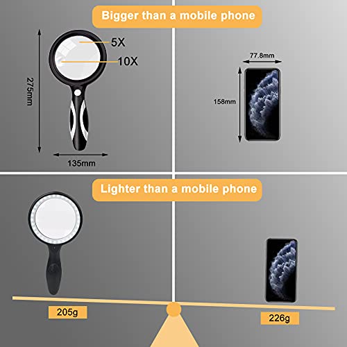 【Design a doppia lente d'ingrandimento】: è una lente in cristallo infrangibile e ad alta risoluzione con ingrandimento 5 e 10 volte. Il materiale di ingrandimento 5x è di vetro e il materiale di ingrandimento 10x è acrilico, entrambi creano un campo visivo privo di distorsioni. Abbastanza piccolo da viaggiare e abbastanza grande da leggere facilmente.
