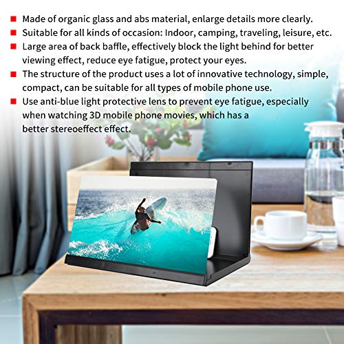 Lente d'ingrandimento per schermo da 14 '', ingranditore per schermo ingranditore 3D per smartphone, supporto per supporto pieghevole per amplificatore dello schermo del telefono cellulare(Nero)