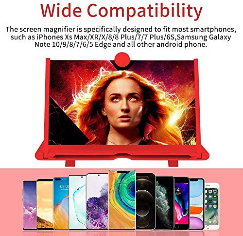 Lente di ingrandimento dello Schermo del telefono12 '', d'Ingrandimento per Telefono Cellulare 3D HD Schermo Ingrandimento con Supporto Pieghevole Video Amplificatore per Tutti Smartphone - Rosso