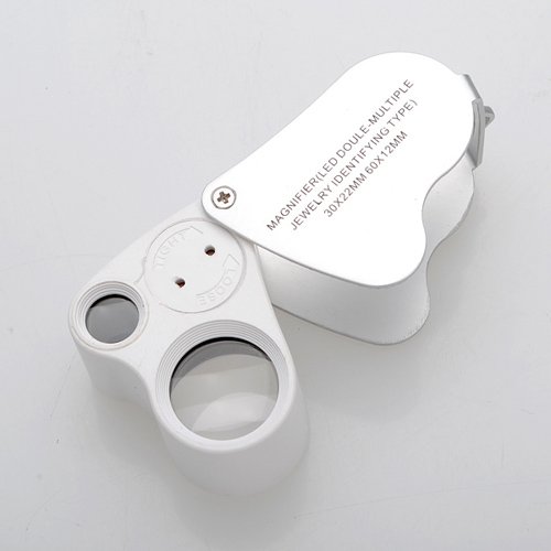 Lente d'ingrandimento tascabile, pieghevole, da gioielliere, manuale, pieghevole, timbro, moneta, luce LED, 30 x 22 mm, 60 x 12 mm