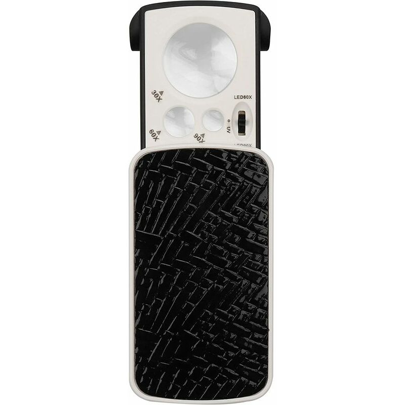 DIMENSIONI E CARATTERISTICHE: Questa lente d'ingrandimento professionale è larga 4,5 cm quando è piegata e lunga 8,3. Quando viene utilizzata e aperta, questa lente d'ingrandimento è lunga 13 cm. Una volta aperto, sono visibili tutte e 3 le lenti. Le dimensioni dell'obiettivo dal più grande al più piccolo sono 30x (23 mm), 60X (10 mm) o 90X (6 mm). FORMATO COMPITO: progettato ergonomicamente per adattarsi alla tua tasca. Con questa lente d'ingrandimento puoi ingrandire testi e numeri e visualizzarli più da vicino in qualsiasi momento e ovunque. Migliora la tua visione in movimento con la funzione pieghevole di questo piccolo specchio ingranditore portatile. Il design compatto consente di riporre questa lente d'ingrandimento nella borsa o nella borsetta. Br> RETROILLUMINAZIONE UV LED: la lente d'ingrandimento wireless a batteria offre opzioni a 3 luci per la tua comodità. Le tre opzioni sono: sorgente luminosa LED da 90X a 30X, retroilluminazione UV e sorgente luminosa da 60X a 30X. In