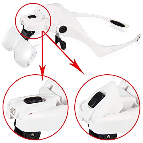 Lente di ingrandimento per testa, Bysameyee Lente di ingrandimento illuminata con visiera in vetro per lavori da vicino, lavori di gioielleria, riparazione di orologi, artigianato, aiuto alla lettura