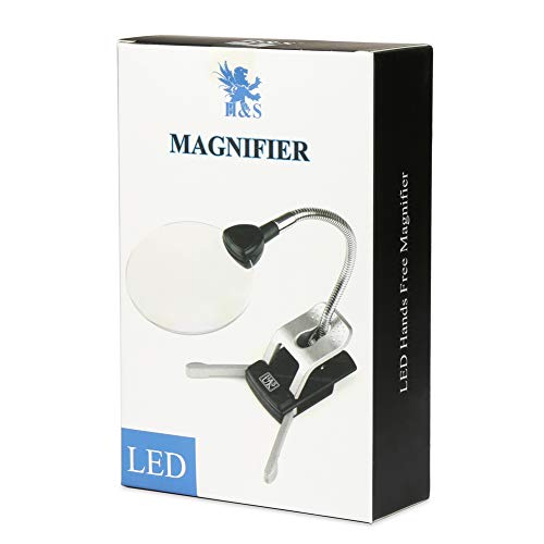 H&S Lente d'ingrandimento a led in vetro con luce sul braccio della staffa del morsetto tavolo da scrivania per leggere gli hobby