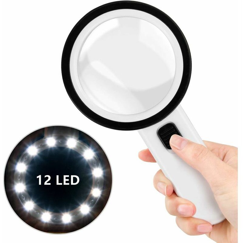 Ingrandimento 30x: queste lenti di ingrandimento sono dotate di doppie lenti in vetro, che possono fornire un ingrandimento 30x per aiutare le persone con problemi di vista a vedere i dettagli fini. Luci a LED luminose: con 12 luci a LED integrate per mantenere il corretto luminosità, la lente d'ingrandimento facilita la lettura o il lavoro in condizioni di scarsa luminosità o oscurità. Può essere utilizzato anche come torcia elettrica. Lente ottica: lente d'ingrandimento trasparente e priva di distorsioni. Questa lente in vetro di qualità da 80 mm con funzione antigraffio garantisce un'eccellente qualità dell'immagine senza distorsioni. Impugnatura comoda, facile da usare: il design ergonomico offre un buon equilibrio e presa.mano comoda, così non ti sentirai troppo pesante o troppo leggero. Può essere acceso/spento con un semplice interruttore a pulsante (batterie non incluse, sono necessarie 2 batterie AA). Multifunzionale: questa lente d'ingrandimento è molto adatta per