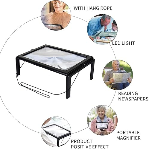 Ampia Gamma di Usi: Lente d'ingrandimento per fogli a pagina intera a mani libere, ideale per leggere mappe e giornali, riparare gadget, intagliare oggetti artigianali, cucire, lavorare a maglia, taglio, ispezione, altri lavori e hobby dove è necessaria la precisione.