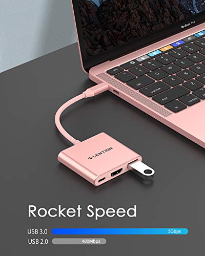 LENTION Hub USB C 3-in-1 Adattatore con Alimentazione da 100W, USB 3.0 e 4K HDMI per MacBook Pro 2023-2016, MacBook Air 2023-2018, Nuovo Surface/Chrome/Steam Deck, ecc. (CB-C14, Oro Rosa)