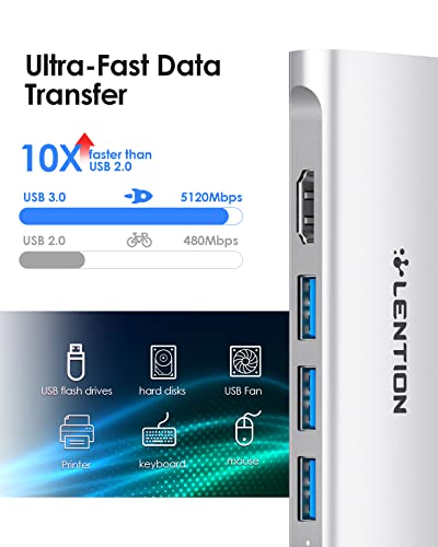 LENTION 6-in-1 Hub USB C HDMI 4K, 3 USB 3.0, Lettore di Schede SD/Micro SD, Adattatore per 2023-2016 MacBook Pro M2 M1, Mac Air, iPhone 15 Plus Pro Max, Surface Pro 9, Chromebook (C34, Argento)