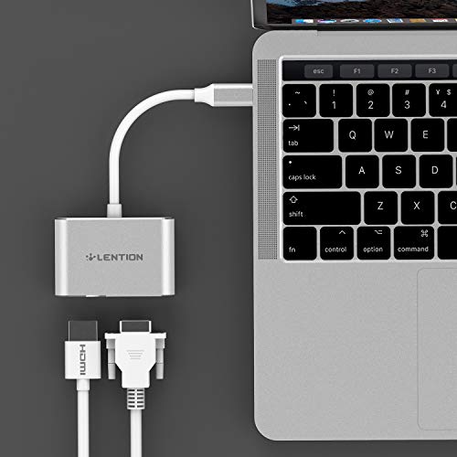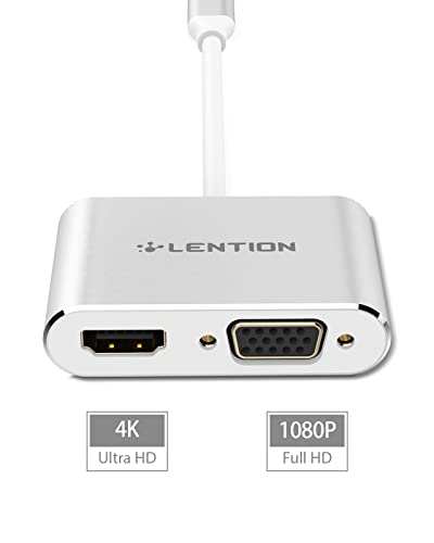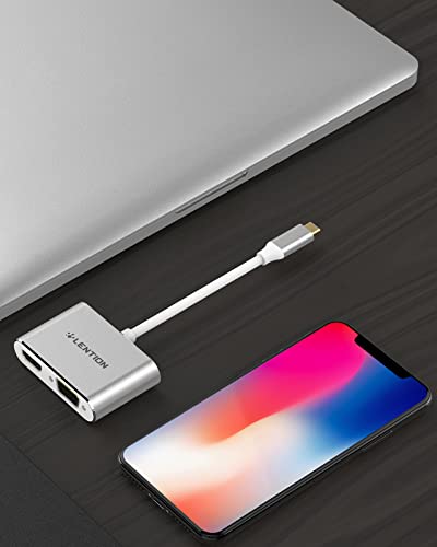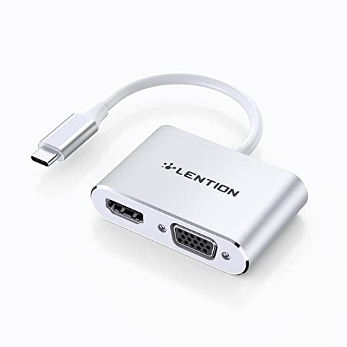 LENTION Adattatore da USB C a HDMI e VGA, Output AV digitale fino a 4K/30Hz Compatibile con 2016-2023 MacBook Pro 13/15/16, New Mac Air/iPad Pro, Surface, Certificato Driver Stabile (CB-C51s, Argento)