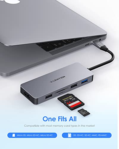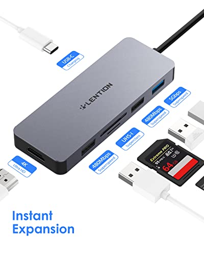 LENTION USB C Hub con 4K HDMI, Lettore di Schede SD/Micro SD, USB 3.0, USB 2.0 e Ricarica per MacBook PRO 2016-2023, Nuovo Mac Air/Surface, Adattatore Driver Stabile (CB-C17, Grigio Spazio)
