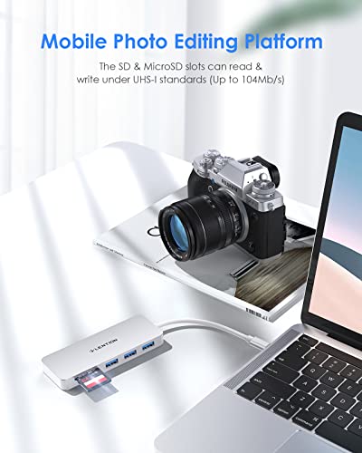 LENTION Hub USB C con 3 USB 3.0, Lettore di Schede SD/Micro SD, Adattatore per MacBook Pro 2023-2016, MacBook Air 2023-2018, ChromeBook, Surface e Altri Dispositivi di Tipo C (C15, Argento)