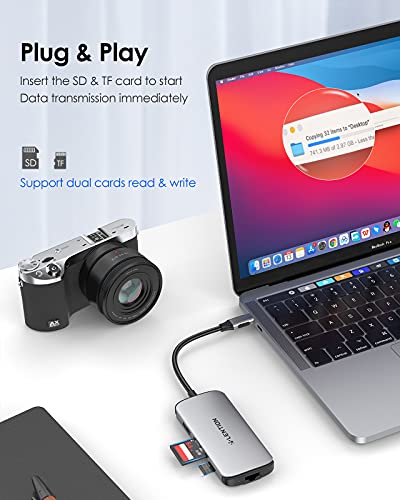 Video Crystal-Clear e Dual Card Read/Write - Con la porta video Ultra HD 4K HDMI, LENTION USB C Hub con HDMI può rispecchiare o estendere i tuoi schermi fino a 4K (3840 * 2160@30Hz) compatibile verso il basso con 1080P@60Hz per offrire all'utente un'esperienza immersiva di visione cinematografica. Gli slot per lettori di schede sono compatibili con la maggior parte dei tipi di schede di memoria popolari sul mercato, tra cui: SD/SDHC/SDXC/MicroSD/MicroSDHC/MicroSDXC, fino alla velocità di UHS