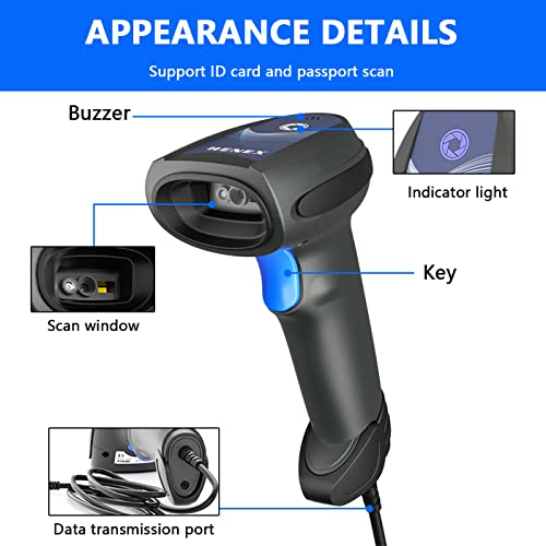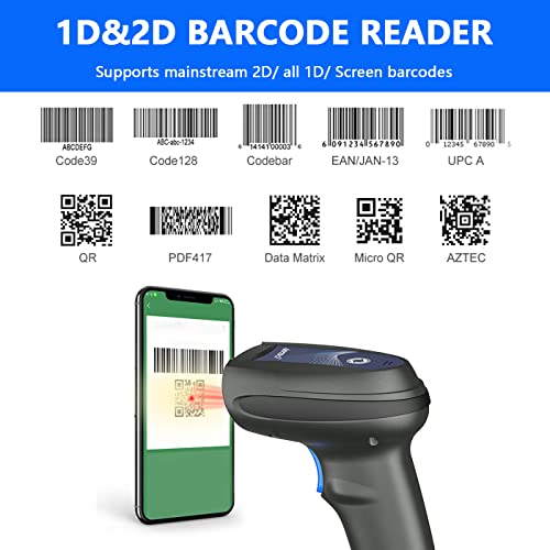 LENVII Lettore di codici a barre 2D,USB Barcode Scanner QR PDF417 Data Matrix Bar Code Reader Supporto per funzioni di scansione automatica,per PC, Mac e laptop