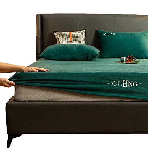 Lenzuola con Angoli Velluto Invernale, Tessuto Caldo Spesso di Lusso Profondo 25 Cm, Ipoallergenico Ultra Morbido E Antirughe, Super Morbido E Confortevole (Green,120 * 200cm+25cm)
