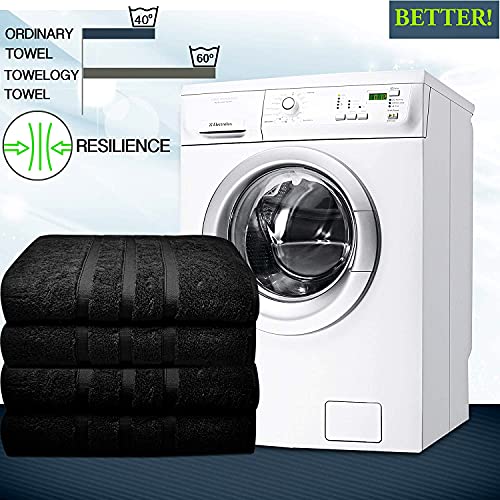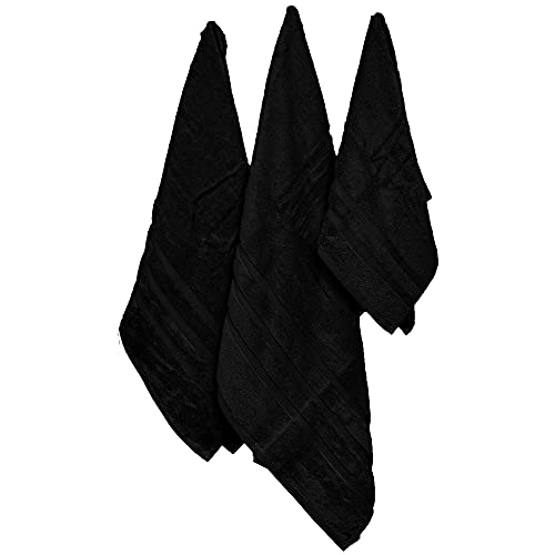 Lenzuola da bagno di lusso in cotone Zero Twist 600 GSM (90 x 140 cm) spessi e felpati di qualità hotel, grandi teli da bagno per piscina, spa e hotel | confezione da 1 pezzo nero