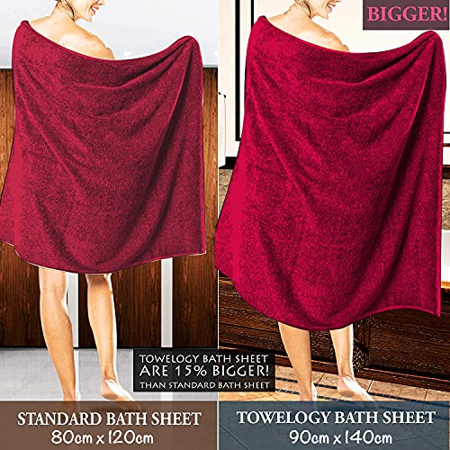 Lenzuola da bagno di lusso in cotone Zero Twist 600 GSM (90 x 140 cm) spessi e felpati di qualità alberghiera, grande piscina, spa e hotel bagno, confezione da 4 pezzi, rosso mirtillo rosso