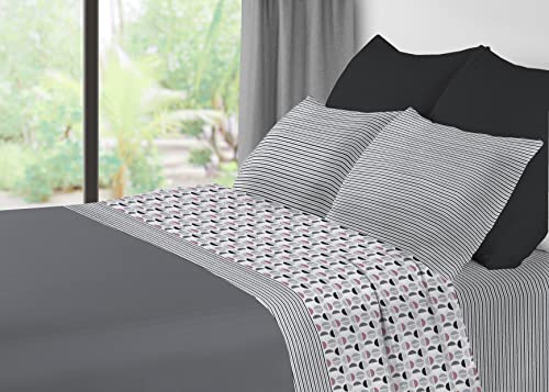 Set Lenzuola Completo Letto Matrimoniale 100% Cotone Made in Italy | Lenzuolo Sopra + Lenzuolo Sotto con Angoli + Coppia Federa | Fantasia Geometrico Cerchi Righe Colori Moderni - Grigio
