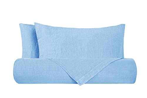 Set lenzuola federe letto parure lenzuola in 100% puro lino lavato delavè stone washed morbido resistente elegante traspirante ipoallergenico made in italy MATRIMONIALE AZZURRO