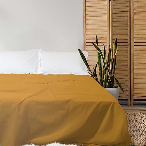 Lenzuola Sopra 100% Percalle di Cotone 200T Tinta Unita Facile Stiro Made in Italy (Matrimoniale, Giallo Oro)