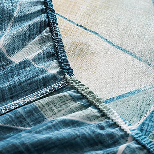 Lenzuola Sotto con Angoli Geometrici Letto Una Piazza e Mezza 150x200x25 cm, Motivo Triangolo Fantastico Astratto Lenzuolo con Angoli Boho 100% Microfibra, Blu Acqua