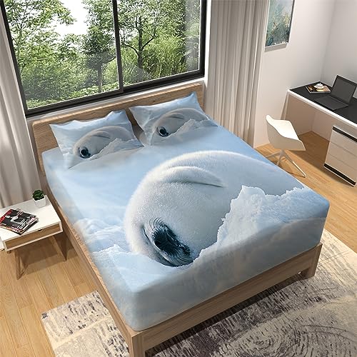 Lenzuolo con Angoli 140x200 cm, Cucciolo Foca Artica Lenzuolo con Angoli Traspirante Morbida Microfibra per Letti Boxspring, Fascia Elastica Tasca Profonda 30 cm, per Bambini e Adulti Lenzuolo