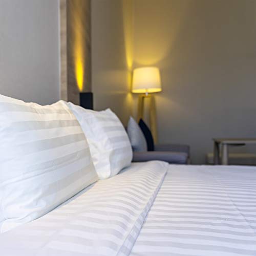 Lenzuolo con angoli elasticizzati, 100% cotone egiziano 300 fili, in raso bianco a righe, White, Super King
