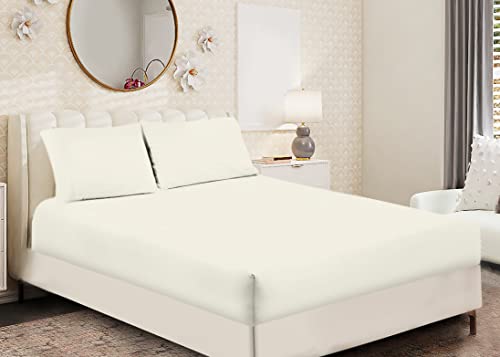 Lenzuolo con Angoli, in Policotone di Percalle, 180 Fili, Non è Richiesta Stiratura, Tinta Unita (per Matrimoniale, Color Crema)
