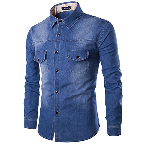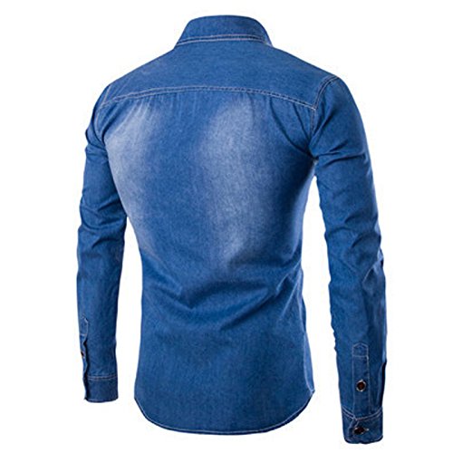 LEOCLOTHO Camicia di Jeans da Uomo in Cotone con Bottoni sul Davanti Comoda Camicie in Denim Maniche Lunghe Blu Scuro XS