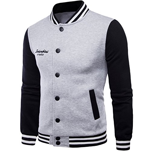 LEOCLOTHO Giacca da Uomo College Baseball Cappotto Jacket Felpa Motociclista Giubbotto Grigio Chiaro XXL