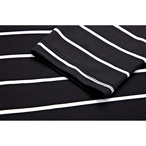 LEOCLOTHO Polo da Uomo Casuale Tennis Golf T-Shirt A Righe Fitness Manica Lunga Cotone Maglietta Nero XS