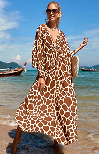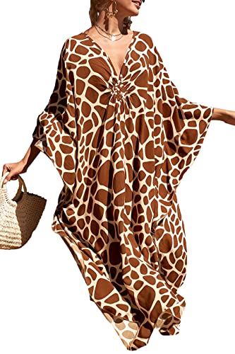 LeofL Abito da donna etnico Kaftano lungo Maxi indumenti da notte copertura del corpo, Marrone, Taglia unica