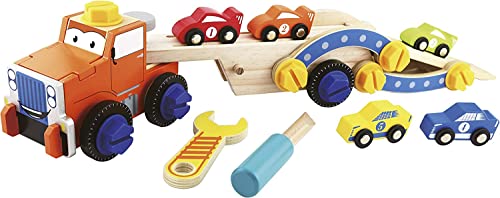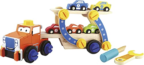 Leomark carro Attrezzi in Legno con Auto per Bambini, Camion per Trasporto automobiline con 5 macchinine, Giocattoli educativi per casa e Asilo, Multicolore Gioco - Happy Romano