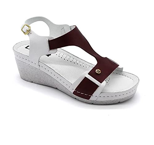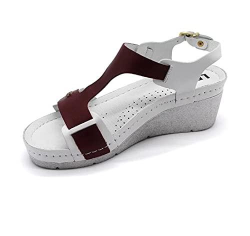 LEON 1010 Sandali Zoccoli Sabot Pantofole Scarpe di Pelle, Donna, Rosso Scuro, EU 41