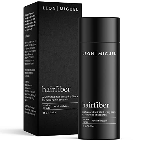 LEON MIGUEL Fibra per Capelli | Infoltimento dei Capelli | Da spargere sui capelli | Premium con Effetto Immediato in Caso di Stempiatura/Alopecia - Polvere per Capelli | 25g (Biondo Medio)