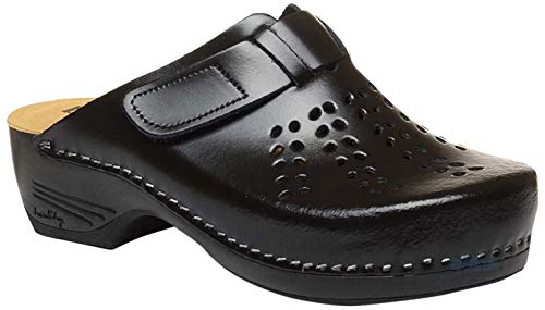 LEON PU161 Zoccoli Sabot Pantofole Scarpe Pelle Donna, Nero, EU 38